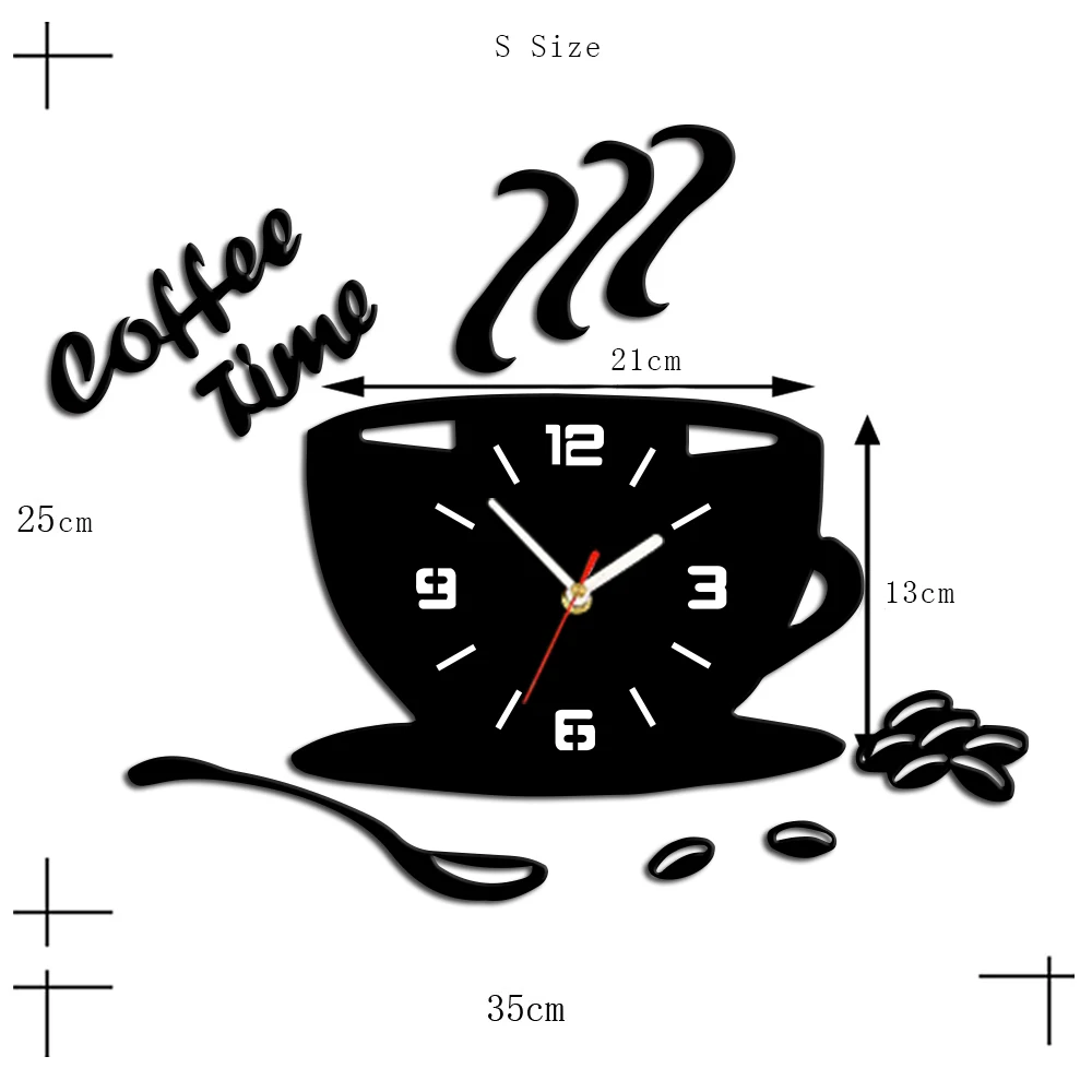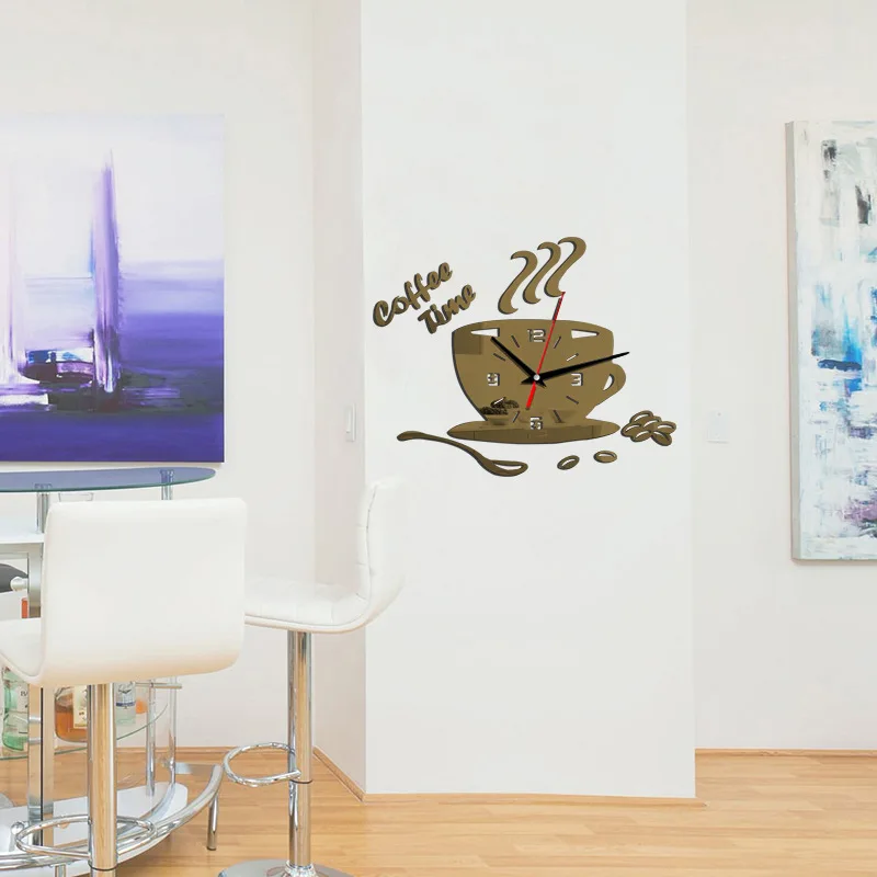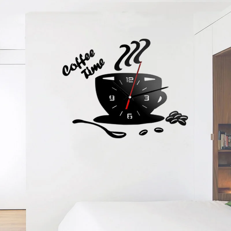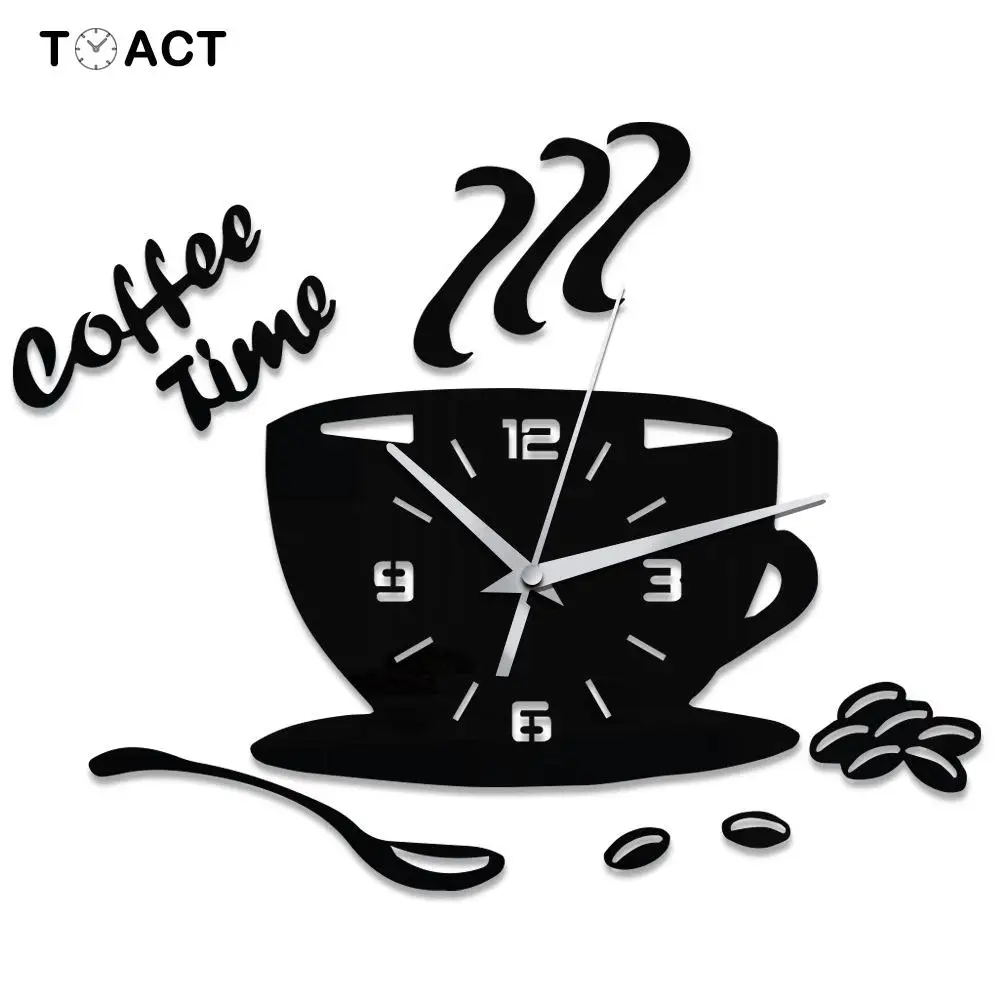 3D DIY Acrylic Wall Clock Modern Design Wall Sticker Kitchen Clocks Home Decor Coffee Time Cup
